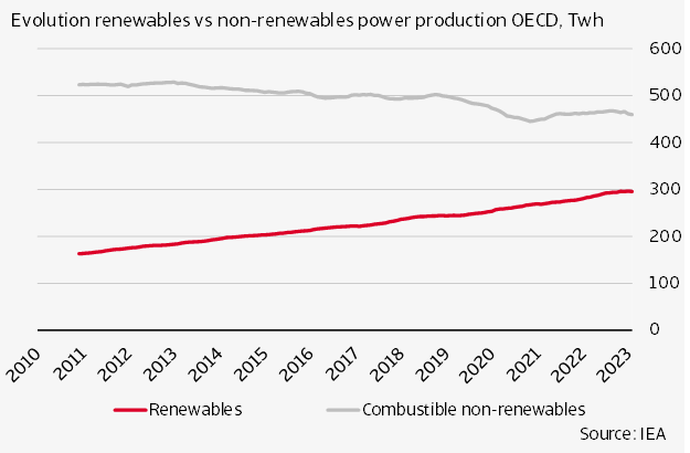 This also applies to other polluting countries. As said above, South Africa is also highly dependent on coal for generating electricity. Due to its dependency on gas (46% of the power mix), Russia’s power sector contributes the most to its CO emissions. But also in Japan, the energy transition needs to accelerate. Here gas and coal have relatively large shares in the power mix, 38% and 29% respectively, and contribute the most to Japan’s CO emissions. One exception is Brazil. Although the country is one of the most polluting in the world, its electricity mix is quite green. Renewables account for around 80% of the electricity mix. Overall, the speed of the energy transition needs to accelerate to stay in line with 1.5C pathway. The power mix is still pre-dominantly brown and the phase-out of coal-fired power is behind schedule.