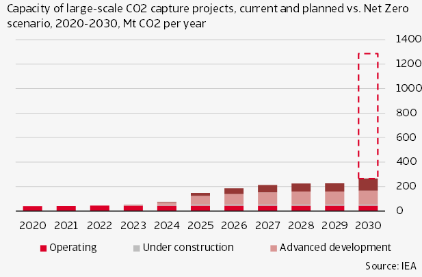 Only some CCUS facilities are online, while most are still in the concept and development phase, but that number is also small. Capturing 1,300 Mt CO emissions by 2030, as required to achieve net zero emissions, will mean huge acceleration of the development and deployment of this promising but immature technology (figure 14). The window of opportunity is small, since the CCUS capacity must be increased twentyfold in less than 10 years.