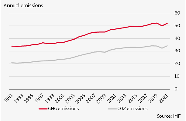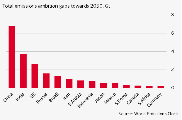 Most others have unambitious targets and in most cases don’t even come close to achieving those. For the emerging market economies among them, such as India, South Africa and Indonesia, the ambition gap may be due to a lack of funding and weaker institutions. The lack of incentives can also play a role. As mentioned, the coal industry is too important economically for South Africa to give up in the short term. Fossil fuel exporters, including Saudi Arabia, have little economic incentive to switch to renewable energy production, as the export potential of renewables, including through hydrogen, is too small to replace the huge revenues they currently earn from fossil fuels.