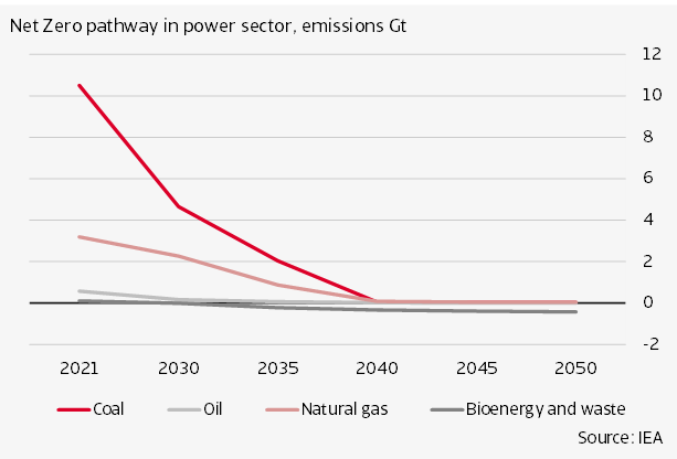 Because of the intensive use of coal in the power sector, phasing out the use of unabated coal for generating electricity is central in the NZE scenario. In 2021, coal emissions amounted to 10.5 Gt and accounted for 73% of total emissions in the power sector.