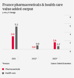 The French domestic market for pharmaceuticals is highly regulated, in particular for reimbursable drugs, which account for about 30% of sales. Brand-name drug producers face strong competition from the generics segment. Additionally, there is continued pressure from the French public health authorities to lower sales costs of drugs and medicines for end-consumers. Regulatory constraints also affect profits of pharmaceutical wholesalers, distributors and pharmacies. However, their margins imoroved in 2021, as sales of medicines and disinfectants/detergents have sharply increased during the pandemic.